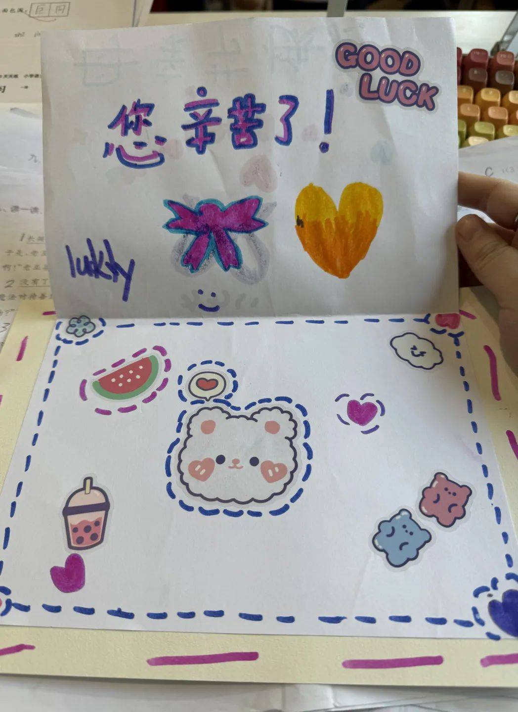 用你的零花钱献上一份小礼物,制作一张贺卡,给母亲一个意想不到的“惊喜”,让她的脸上绽开幸福的笑容。
