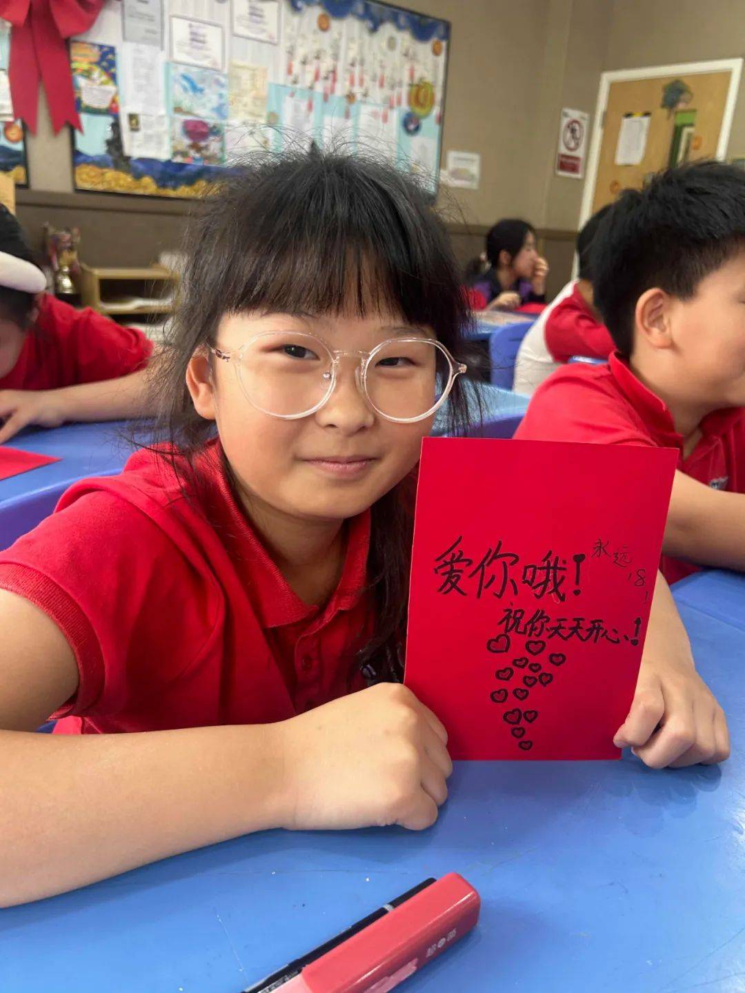 爱妈妈、爱亲人、爱老师、爱学校、爱社会、爱祖国、爱伟大的党。
