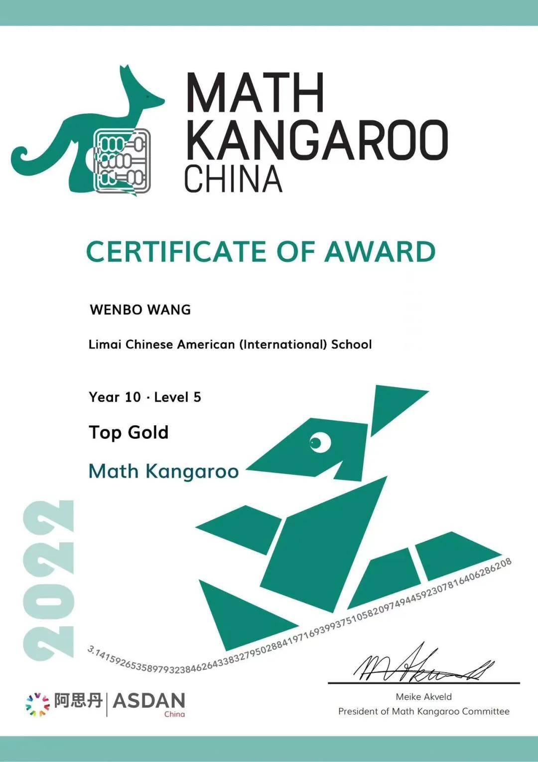 我呢?在我高中期间就参加了袋鼠数学思维挑战活动,并获得了金奖。