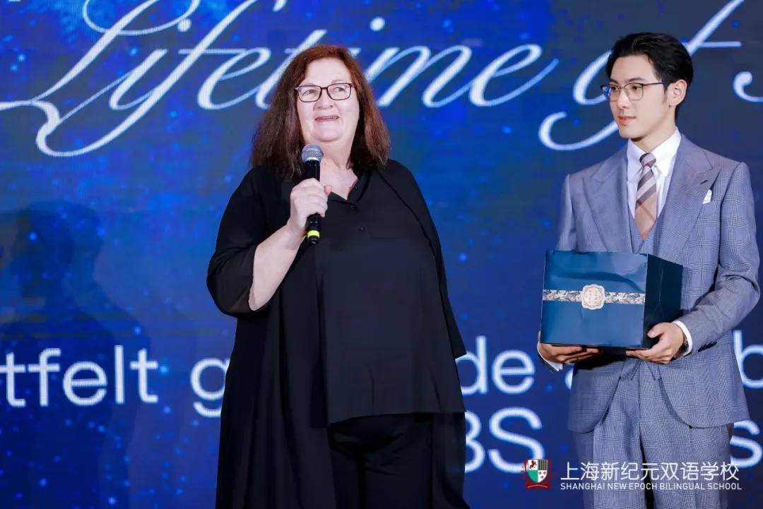 在毕业典礼上,学校为文学老师Maggie举办了一场温馨的退休仪式,学生代表向Maggie老师赠送退休礼物,李海林校长致辞深情回顾Maggie老师七年来为学校发展做出的贡献。