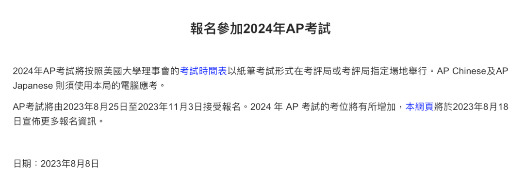 2024年香港AP考试时间安排