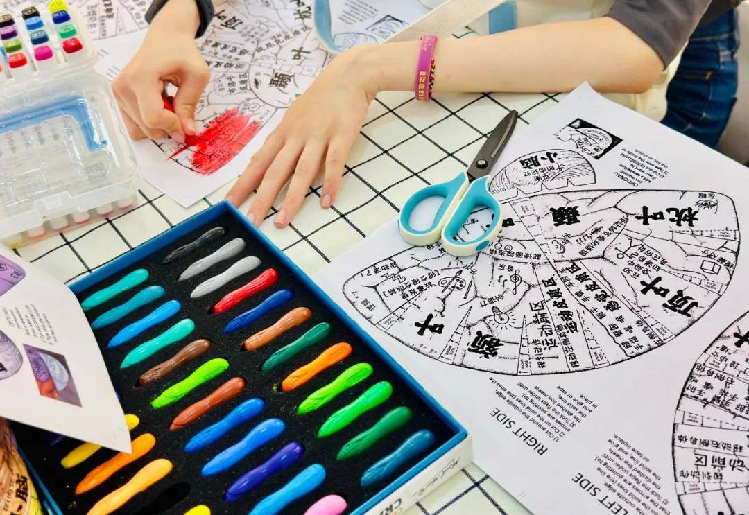 最后,同学们还在现场来了一次大脑的“DIY”,按照额叶、颞叶、枕叶、辨别时间、威尼克皮质区、运动前区等不同功能和分区涂色,最后经过裁剪完成一个立体的大脑模型。